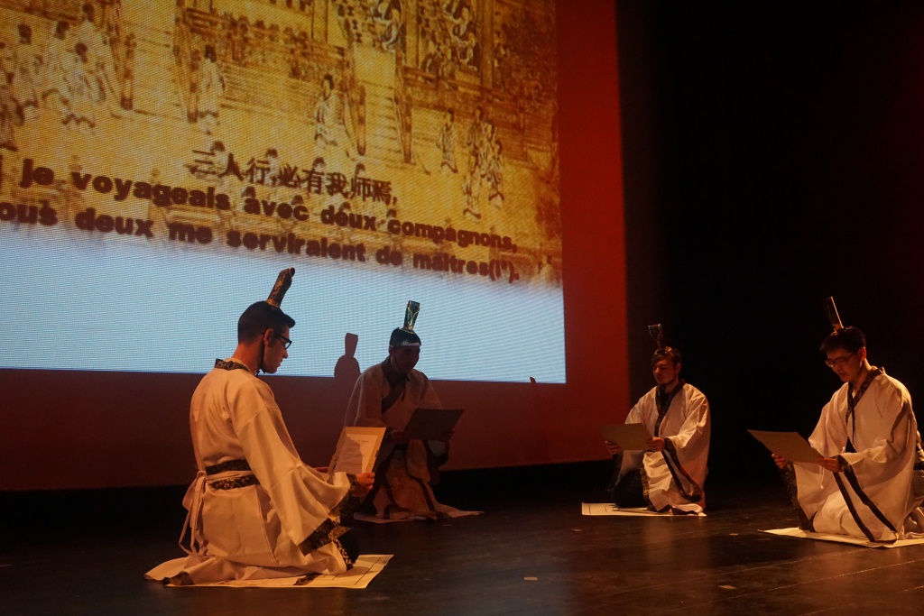 此次除夕新年劇《孔子的夢》以文化傳承與交流為主題,通過“宇宙洪荒、春秋哲音、薪火傳承、西去東來、孔子在法蘭西”等劇目一一呈現(xiàn)??自簣F隊與中法學生、當?shù)刂袑W漢語教師和華人華僑攜手合作為大家?guī)砹艘粓黾拕?、朗誦、歌舞、小品、民樂于一體的精彩演出。