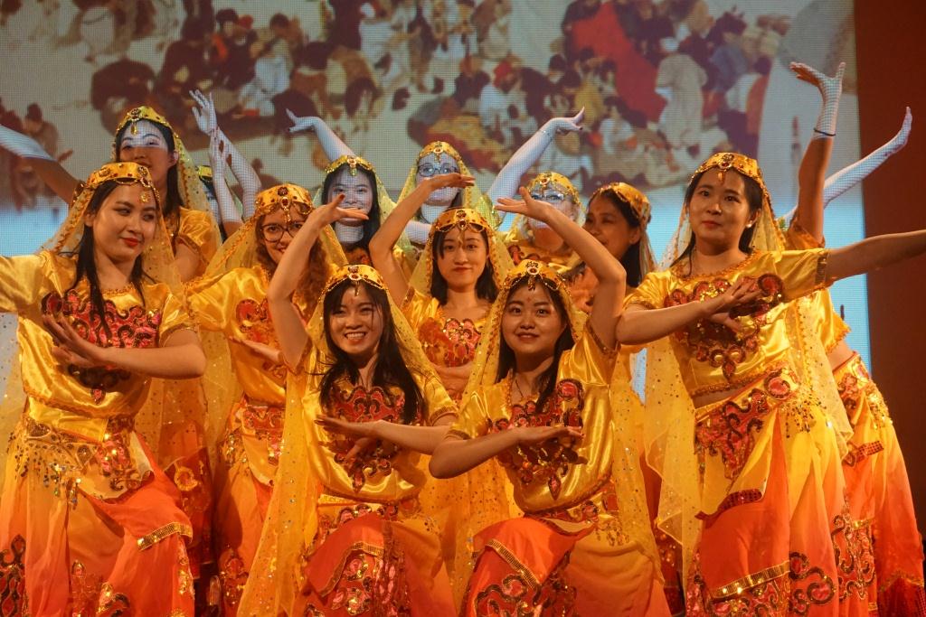這是法國阿爾多瓦大學第三屆孔子中國藝術節(jié)的開幕式,新年劇《孔子的夢》設計巧妙,參與度高,覆蓋面廣,思想性強,融莊重、壯麗、喜慶和幽默于一體,以《孔子的夢》話劇為主線,穿插大學生、孔院學員、留學生、漢語教師以及南京大學、中山大學、臺灣文化大學交換生合作帶來的節(jié)目,包括《千字文》、《論語》、《鹿鳴》、《出塞》、《滿江紅》、《祖國啊,我親愛的祖國》等經(jīng)典古今詩歌吟誦,小品《生日快樂》,歌曲《我和我的祖國》,舞蹈《禮儀之邦》、《樓蘭少女》、《非洲舞蹈》,養(yǎng)生氣功五禽戲、雙人太極《化蝶》,古琴演奏《湘江怨》,大合唱《讓世界充滿愛》。演出結束后,由阿爾多瓦大學孔子學院法方院長金絲燕教授和中方院長吳朝陽教授聯(lián)合發(fā)表了新年致辭,并為參演師生頒發(fā)了榮譽證書。