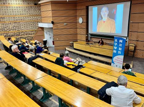 法國阿爾多瓦大學(xué)孔子學(xué)院法方院長、北京師范大學(xué)跨文化研究院副院長金絲燕教授,于法國時(shí)間2023年5月11日,在法國阿爾多瓦大學(xué)的讓·莫奈報(bào)告廳,舉辦文化講座,題目《中國思想與冥想》。