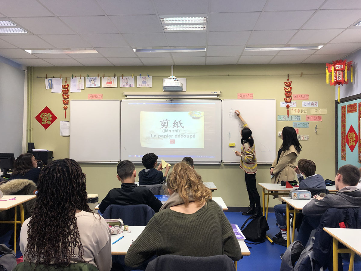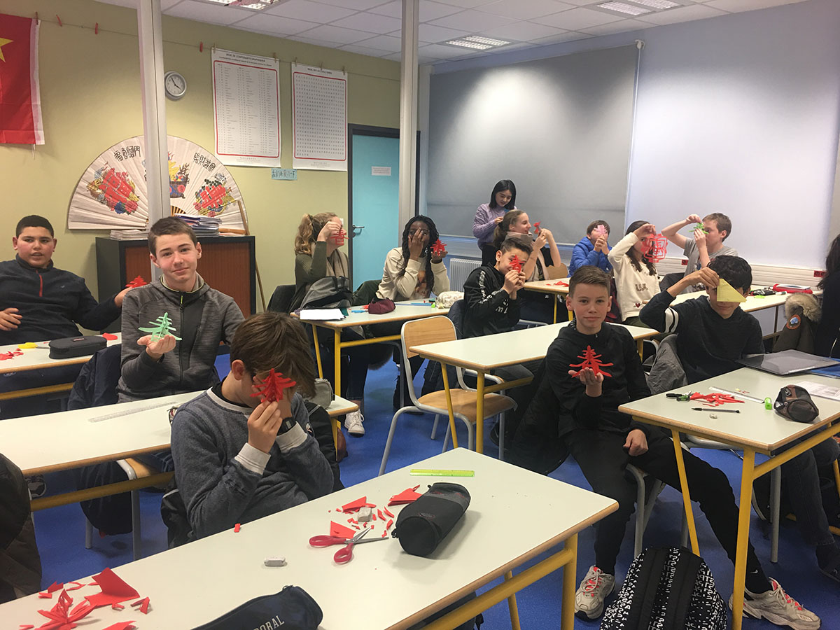 Le 13 décembre 2019, Madame Chen Yunyun, professeur de chinois à l'Institut Confucius d'Artois, a dispensé un cours de coupe de papier à 15 élèves de troisième au collège Denis Diderot.