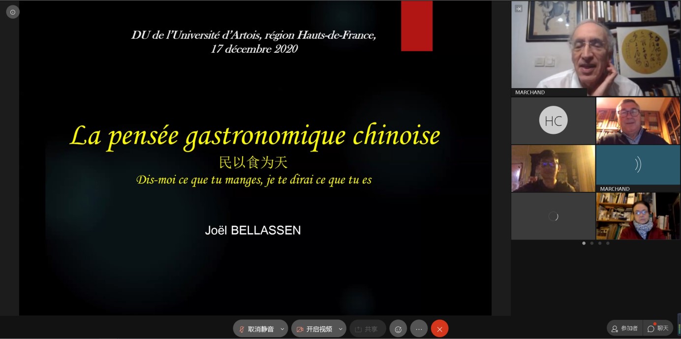 On Thursday, December17, 2020, the Hauts-de-France Regional Council, with the cooperation of the Confucius Institute at the University of Artois, held a conference on Chinese Food Thoughts. The lecture was held online by the Regional Council Parliament and has been introduced by Jo?l Bellassen, president of the European Association of Chinese Teachers, former university professor at Inalco, and honorary Inspector General of National Education. It is also part of the recent university diploma issued by the Confucius Institute and the University of Artois.