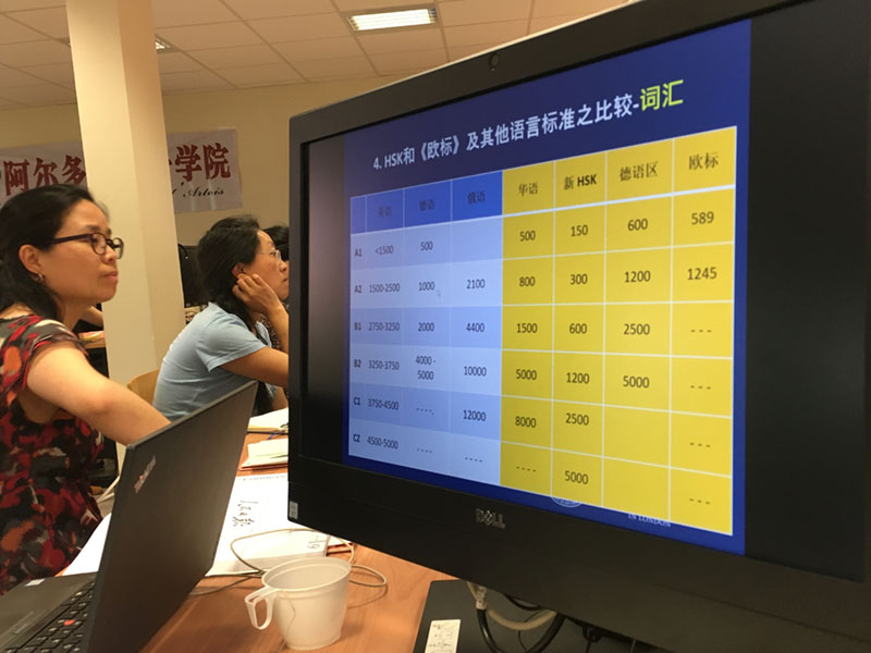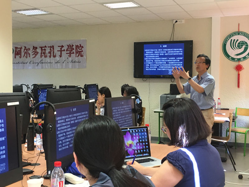 法國(guó)阿爾多瓦大學(xué)孔院院長(zhǎng)、北師大跨文化研究院副院長(zhǎng)金絲燕教授近期主持第十二屆歐洲孔子學(xué)院漢語(yǔ)教師與本土教師培訓(xùn)。2019年6月27日至29日,阿爾多瓦孔子學(xué)院、阿爾多瓦大學(xué)和文本與文化研究中心聯(lián)合舉辦了為期三天的國(guó)際研討會(huì)暨第十二屆歐洲孔子學(xué)院漢語(yǔ)教師與本土教師培訓(xùn)。來(lái)自歐洲5個(gè)國(guó)家的5所孔子學(xué)院及課堂,法國(guó)北部10余所中小學(xué)及教育機(jī)構(gòu)共計(jì)40名學(xué)員,包括孔子學(xué)院院長(zhǎng)、漢語(yǔ)教師及阿爾多瓦大學(xué)在校博士生和碩士生參加了本次培訓(xùn)。