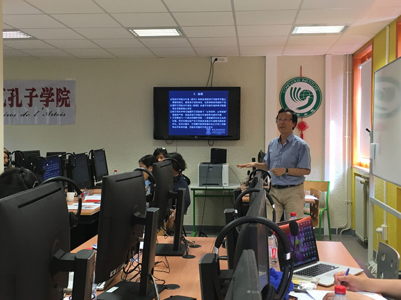 The theme of this seminar and Chinese teacher training is “Monism or Duality: The Critical Choice of Chinese Nature and Its Teaching”. Jo?l Bellassen (Professor, HDR Member of the team PLIDAM, INALCO, President of the European Association of Chinese Teaching), Zhang Xinsheng (Professor, PhD, Hon FCIL, Director of the Centre for Modern Languages of the American International University in Richmond of London), Grace Poizat, (Associate Professor, Department of East Asian Studies and Deputy Director of the Confucius Institute of Geneva University), Zhang Hong (Professor and Director of the Confucius Institute of Rome University), Yin Wenying (French Regional Ombudsman for Chinese Language Education), Martine RAIBAUD (Director of Chinese Department in La Rochelle Uniersity and the Confucius Institute of La Rochelle), and Prof. Jin Siyan (Director of the Chinese Department of the Artois University and Dean of the Confucius Institute of Artois) attended the seminar and training session.