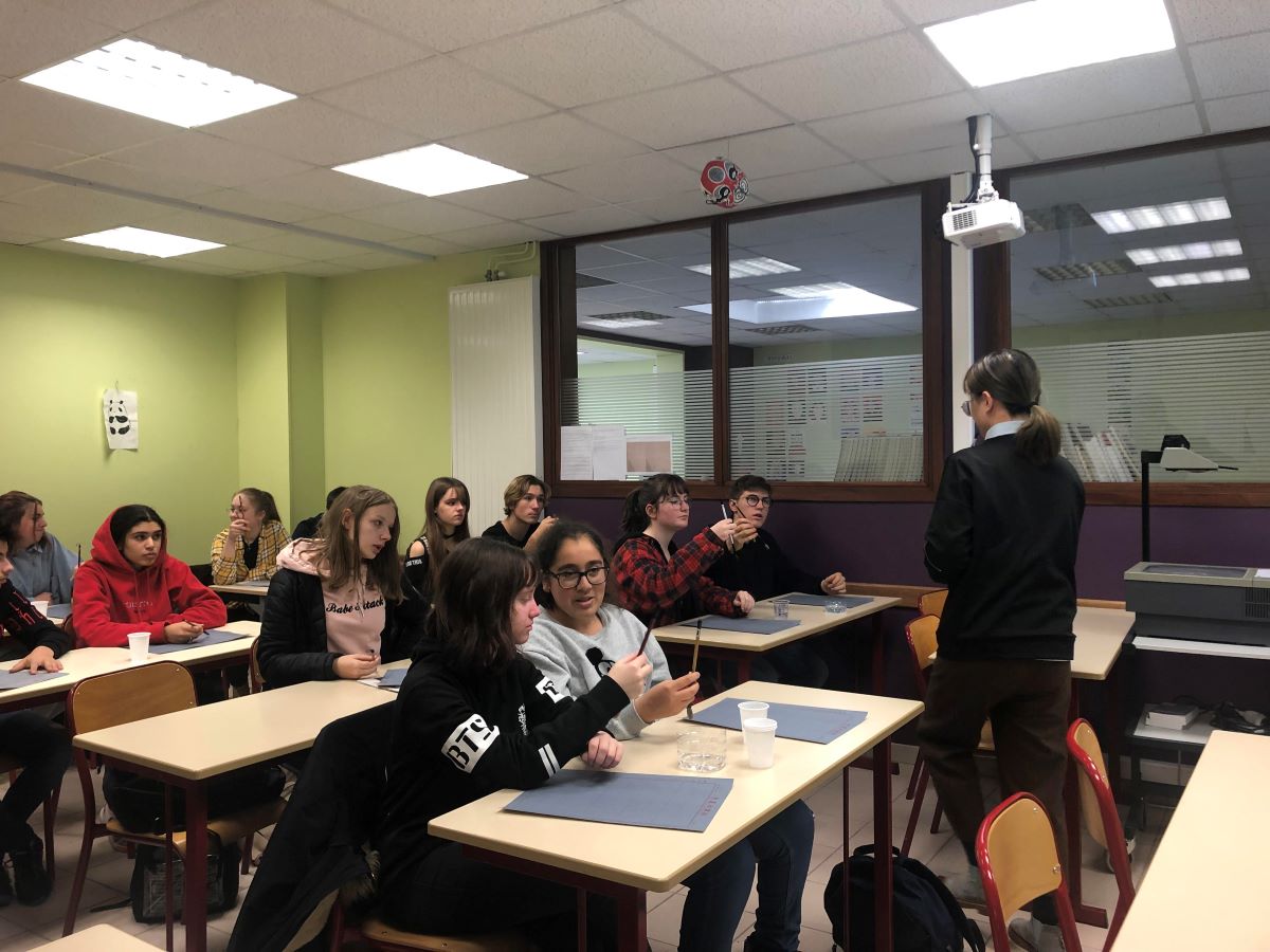 Le 4 décembre 2019, Cao Jing et Gao Junyu, enseignants bénévoles chinois à l'Institut Confucius d'Artois, ont été invitées au Collège Saint-Paul de Lens pour dispenser des cours de calligraphie chinoise. Les ateliers se sont déroulés devant un public de 70 élèves suivant tous des cours de mandarin au collège. Après avoir divisé les élèves en 3 groupes, les enseignants bénévoles, accompagnés de Madame Wang Siping, professeur de chinois au collège Saint Paul, ont pu démarrer la démonstration.
