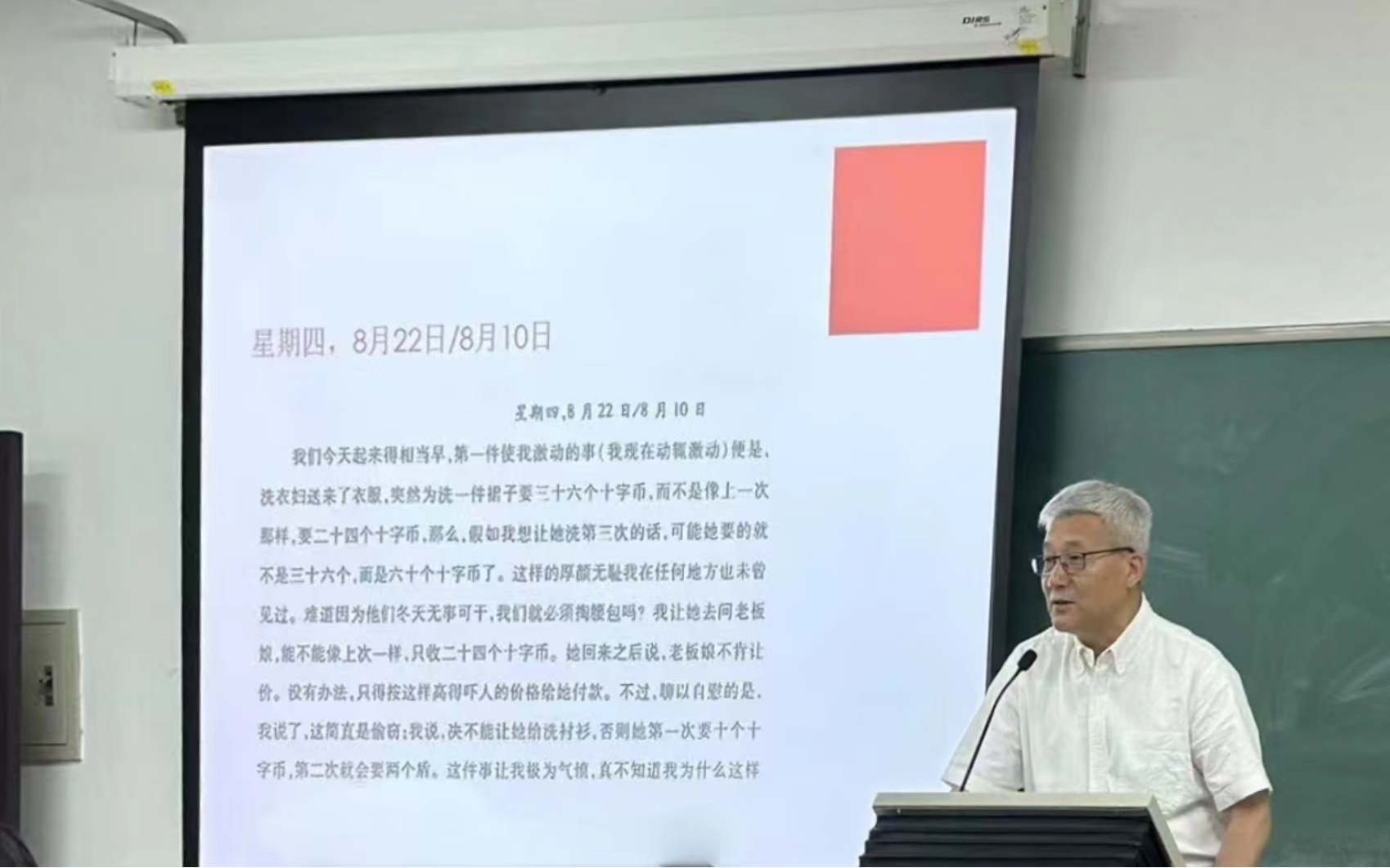 李正榮教授注重與聽講學生的互動,充分肯定了十五位同學豐富多彩的課堂展示,他們是:李雨桐《赫爾岑---用文學梳理私人與社會》、楊雨曦《屠格涅夫主題報告》、侯呼雷《列夫·托爾斯泰》、沈懿風《托爾斯泰的思想轉向》、于游川《謝苗諾夫的諜戰(zhàn)世界---<春天的十七個瞬間>及其他》、李鈺濤《陀思妥耶夫斯基與道德教育》、李奕圓《皈依上帝 vs 苦難與惡----論陀思妥耶夫斯基復調小說的救贖探索》、華潔瑩《陀思妥耶夫斯基寫作的瘋癲視角與審判鏡像》、龔雨薇《陀思妥耶夫斯基<作家日記>中衍生的思考》、熊婧雅《契訶夫筆下的女性形象分析-----看契訶夫女性觀及其成因》、黃鈺茜《契訶夫的另一重身份》、劉?,?/span>《安東·巴夫洛維奇·契訶夫----在冷酷的微笑中體察生活的殘酷》、楊艾艾《遇見契訶夫》、郭文慧《果戈理文學世界的狂歡化》、茍馨月《奧勃洛摩夫性格的形成原因探析》。