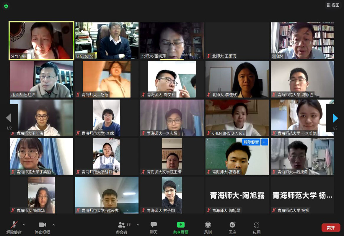 授課結(jié)束后,劉曉林副院長做總結(jié)。他代表青海師范大學(xué)文學(xué)院全體師生,向遠(yuǎn)在法國里爾的金絲燕教授表示了誠摯謝意,并邀請金教授在疫情得到控制后,到青海高原實地考察講學(xué)。青海師范大學(xué)文學(xué)院院長暨北京師范大學(xué)民俗典籍文字研究中心原主任李國英教授和北京師范大學(xué)跨文化研究院院長董曉萍教授分別從各自研究領(lǐng)域,對金絲燕教授的授課進(jìn)行了專業(yè)性的評議。最后,“跨文化中國學(xué)研究方法論“課程的第二講圓滿結(jié)束。