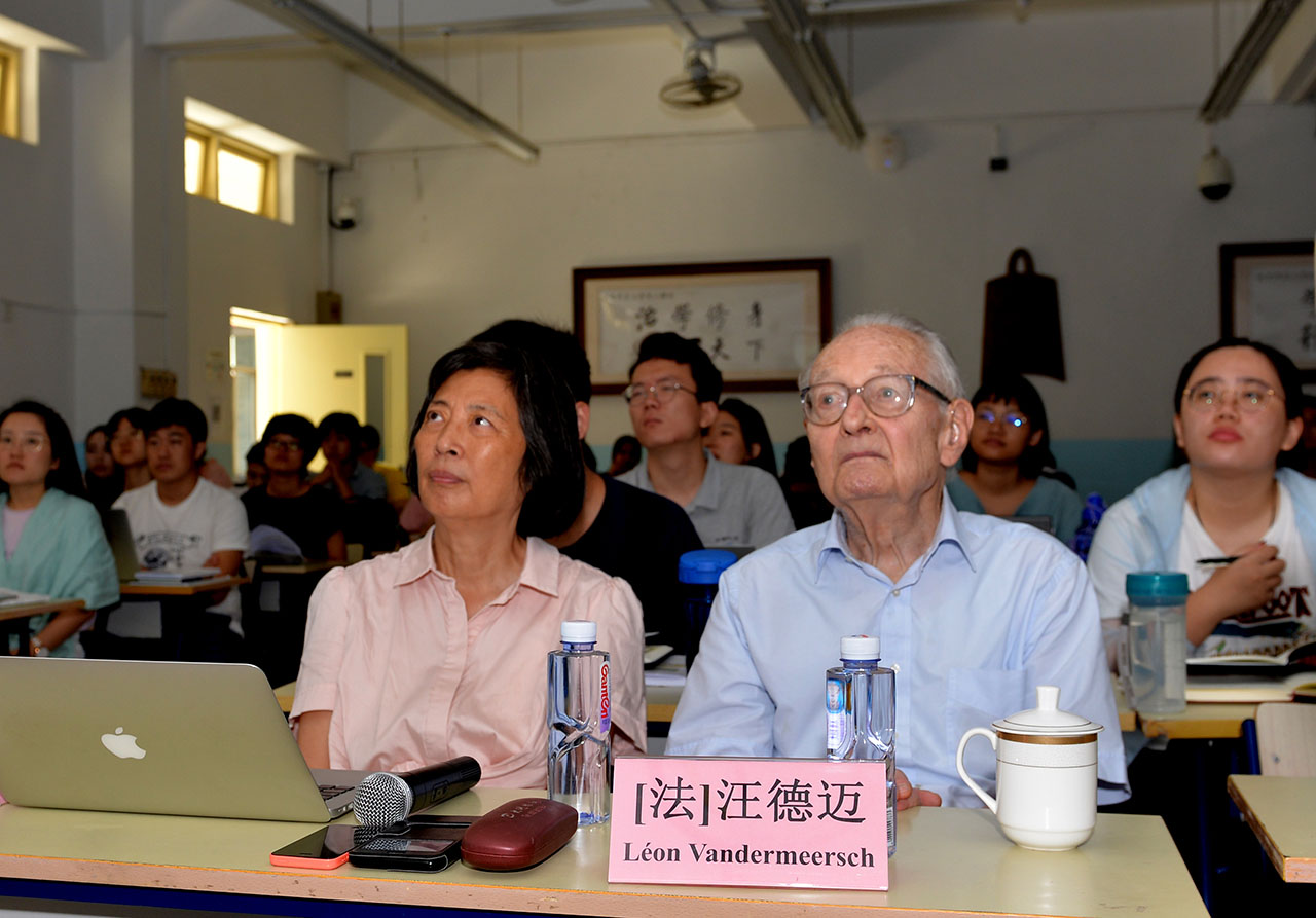 2018年8月23日上午,北京師范大學(xué)資深教授,北京師范大學(xué)章黃學(xué)術(shù)研究中心主任王寧先生為跨文化學(xué)研究生國際課程班帶來《漢字與中華文化的關(guān)系》的精彩講座。法蘭西學(xué)院通訊院士、法國高等社會科學(xué)研究院終身教授汪德邁先生,法國阿爾多瓦大學(xué)金絲燕教授,北師大跨文化研究院院長董曉萍教授,北師大跨文化研究院副院長李正榮教授到會。金絲燕教授與董曉萍教授共同主持講座。