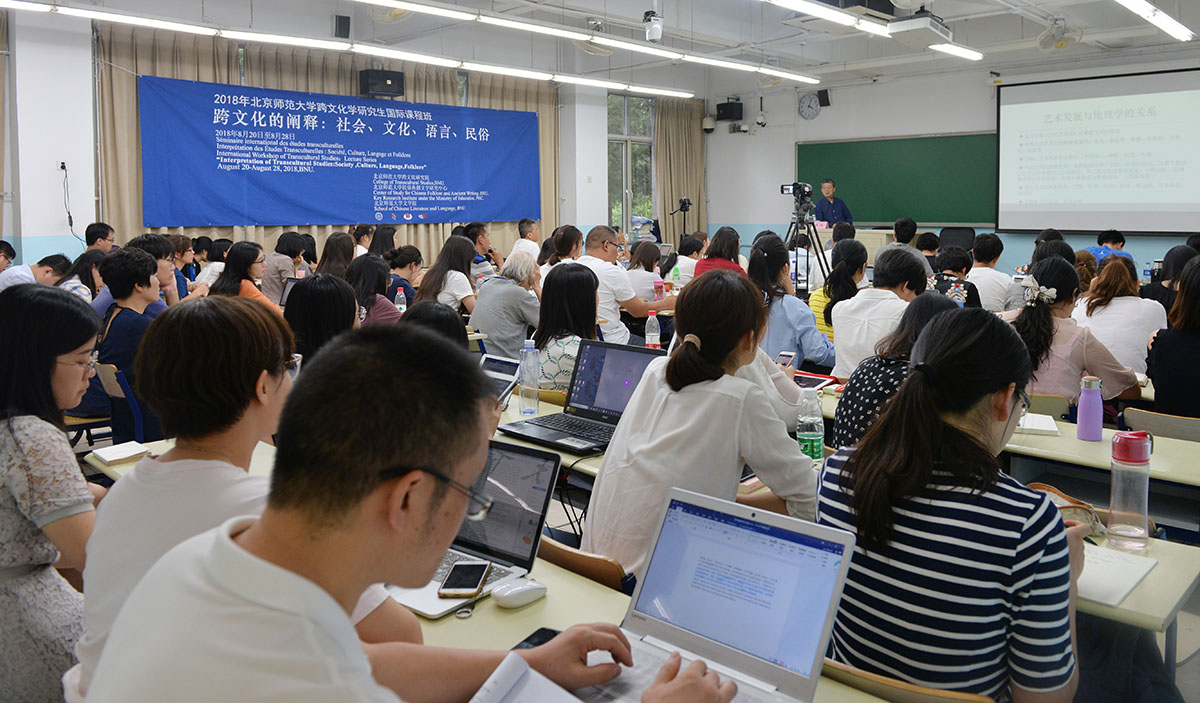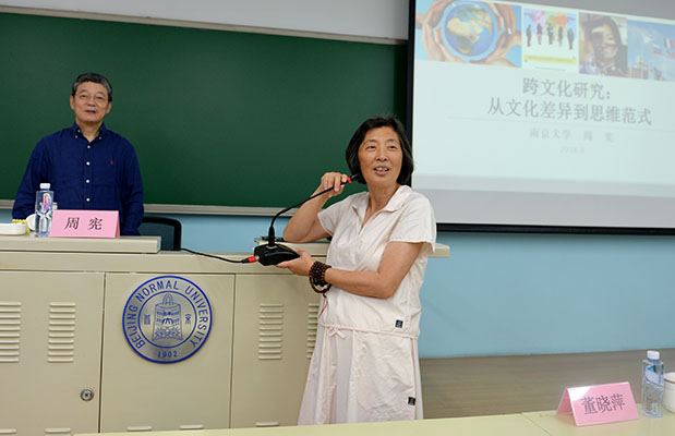 2018年8月22日下午,南京大學(xué)人文社會科學(xué)高級研究院院長周憲教授為北師大跨文化學(xué)研究生國際課程班授課,題目是《跨文化研究:從文化差異到思維范式》,法國阿爾多瓦大學(xué)文本與文化研究中心主任金絲燕教授主持講座。