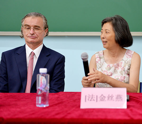 最后一項(xiàng)議程是中外專家寄語(yǔ)年輕一代研究生人才。汪德邁在簡(jiǎn)單致辭中表達(dá)了自己參與跨文化學(xué)教育事業(yè)的深刻理念,他指出,跨文化學(xué)的研究生努力學(xué)習(xí)、成為人才,就能成為國(guó)家的希望。程正民教授指出,跨文化研究院在近四年的發(fā)展中取得了很多成績(jī),課程班的講座前沿理論,更有中外視野??缥幕芯吭阂獔?jiān)持做好教學(xué)和出版工作,加強(qiáng)跨文化學(xué)與傳統(tǒng)優(yōu)秀文化研究的結(jié)合,持續(xù)不斷地努力探索。法國(guó)索邦大學(xué)謝內(nèi)教授表示,中國(guó)青年精英代表們面前發(fā)表感言十分榮幸,他驚訝于中國(guó)學(xué)生對(duì)智性的熱烈關(guān)切,擁有多樣而豐富的研究題材。他認(rèn)為,參加這次課程班的學(xué)員們,代表了一種開放的精神,不是局限于自己的文化,而是從自己的文化向各個(gè)文化伸展,建設(shè)文化間的橋梁,祝福在座的年輕人為自己的祖國(guó)帶來(lái)榮耀,在學(xué)業(yè)與生活中都取得成功,他希望每位同學(xué)相信生活、相信生命、相信理想。金絲燕教授在寄語(yǔ)中提出,最偉大的事業(yè)需要最長(zhǎng)的時(shí)間,要用最大的誠(chéng)意與承諾去進(jìn)行。在現(xiàn)代的社會(huì)中,第二點(diǎn)雖然難以做到,但第一點(diǎn)卻是我們可以努力的方向,就像汪德邁先生一樣,六十年如一日研讀中文書籍,堅(jiān)持不懈。金教授祝福大家在學(xué)問(wèn)的道路上做一只春蠶,不停地吐絲,直到生命的盡頭。
