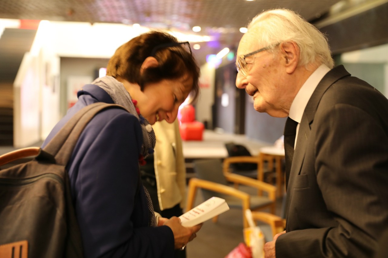 他代表法國(guó)駐華大使歡迎各位的到來(lái),對(duì)講座網(wǎng)絡(luò)報(bào)名大幅突破限額表示感嘆,對(duì)汪德邁先生在中法知識(shí)界的崇高聲望表示敬意。他說(shuō),汪先生是今晚的明星。他的人生與學(xué)術(shù)經(jīng)歷,曾將他帶往中國(guó)、越南、印度和日本等亞洲國(guó)家,他研究中國(guó)社會(huì)制度和中國(guó)思想史,在巴黎高等社會(huì)科學(xué)研究院重點(diǎn)研究儒學(xué),著作等身。他是法國(guó)當(dāng)今最重要的漢學(xué)家。他的近作《中國(guó)教給我們什么?》,書(shū)名就非常吸引人,書(shū)中有了解中國(guó)的鑰匙,這對(duì)我們來(lái)說(shuō)是很重要的,我們希望得到這把鑰匙。今晚的會(huì)議廳很熱,有天氣的熱,也有精神上的、心理上的熱度。“尊敬的汪德邁先生,我們期待聆聽(tīng)您的話(huà)語(yǔ)與思想”。