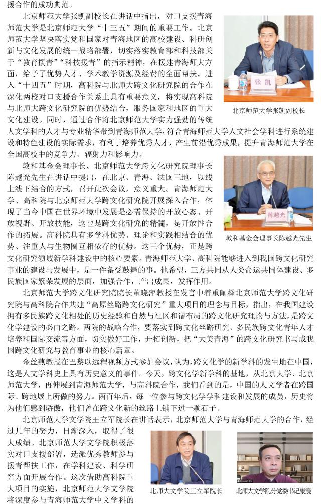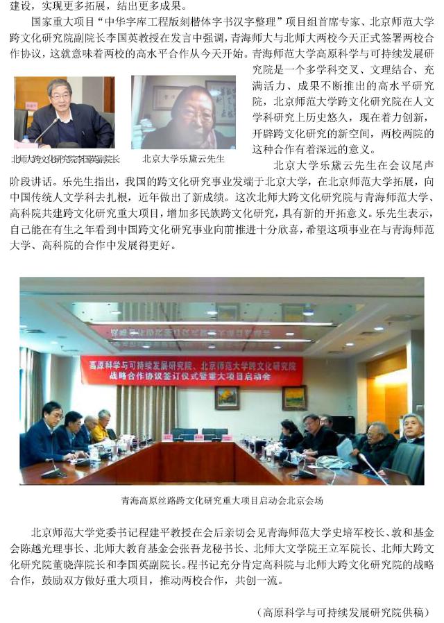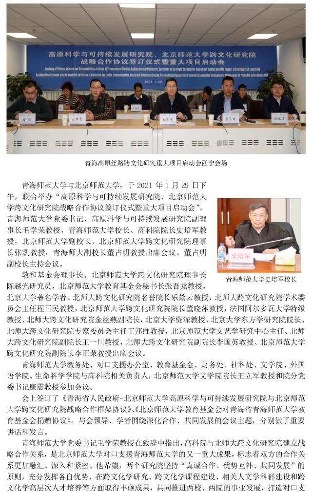 青海師范大學與北京師范大學聯合舉辦“高原科學與可持續(xù)發(fā)展研究院、北京師范大學跨文化研究院戰(zhàn)略合作協(xié)議簽訂儀式暨重大項目啟動會”
