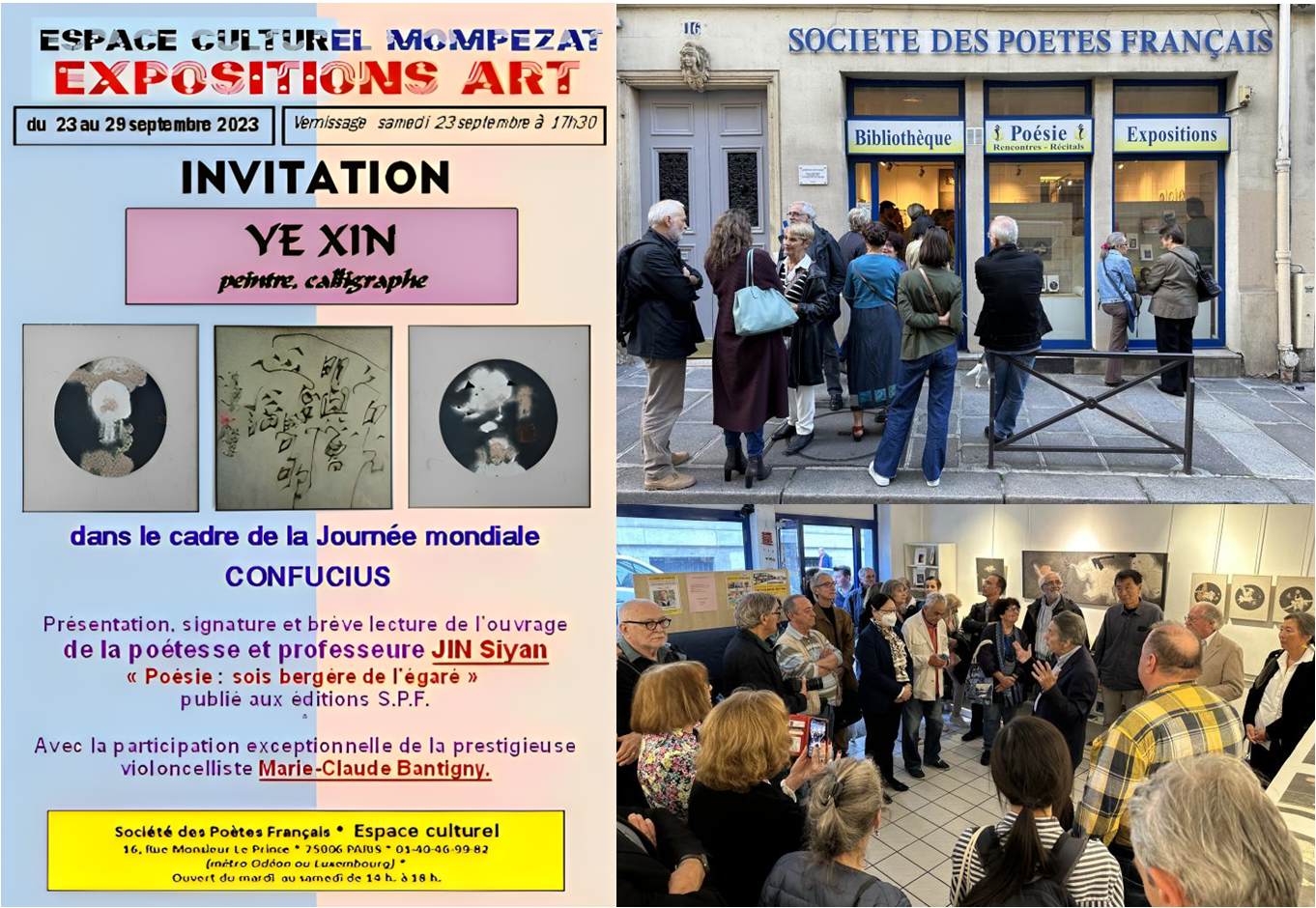 Le 23-29 septembre 2023, The French Modern Poets Society ,l’Institut Confucius d’Artois en France a organisé la 10e édition de la Journée mondiale de Confucius, afin de célébrer l’anniversaire du philosophe, à la Société des Poètes fran?ais à Paris. Cette année, la Journée Mondiale s’est déroulée en 3 actes : 1) exposition de peinture et de calligraphie de l’artiste Ye Xin ; 2) concert de violoncelle ; 3) récital de poésie.