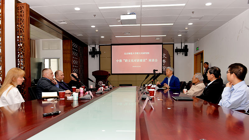 北京師范大學(xué)跨文化研究院自2015年籌備,2016年正式成立以來(lái),一直致力于全球的跨文化學(xué)建設(shè),努力尋求建立全球各個(gè)文化板塊之間的跨文化理論機(jī)理和機(jī)制。中俄學(xué)者之間的平等交流,互觀互鑒,共同促進(jìn)“跨文化學(xué)”建設(shè)是北師大跨文化研究院一個(gè)著力點(diǎn)。2018年4月23日,在北師大,一場(chǎng)高水平的“中俄學(xué)者跨文化學(xué)建設(shè)”的對(duì)話圓滿達(dá)成。本次對(duì)話深入展開(kāi),議題設(shè)定為三個(gè)方面議題:一、作為跨文化對(duì)話基礎(chǔ)介質(zhì)的語(yǔ)言與翻譯,二、跨文化民間文學(xué)學(xué)科建設(shè),三、跨文化的中俄詩(shī)學(xué)。