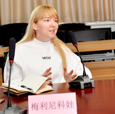 彼得堡大學(xué)東方學(xué)院的斯托羅茹克教授極為活躍的插入話題。彼得堡大學(xué)樂(lè)于與中國(guó)同行擴(kuò)大合作。俄羅斯有“中國(guó)學(xué)”,中國(guó)也有“俄羅斯學(xué)”,但從前沒(méi)有機(jī)會(huì)討論未來(lái)的合作?,F(xiàn)在北師大跨文化研究院打開(kāi)了一條新路,展現(xiàn)了一個(gè)新的未來(lái),兩校合作可以提升到新的水平。彼得堡大學(xué)孔子學(xué)院的俄方院長(zhǎng)梅利尼科娃也積極參加討論。在她的帶領(lǐng)下,彼得堡大學(xué)孔院尋找合作形式,主要有兩點(diǎn),一是研究型的合作,二是發(fā)展教育,學(xué)生互派,推進(jìn)中俄大學(xué)生夏令營(yíng)等項(xiàng)目。中俄跨文化交流,還要獲得各自相關(guān)行政機(jī)構(gòu)的支持。