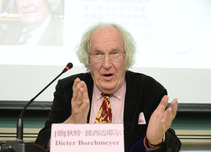 2018年10月12日至10月16日,德國巴伐利亞美藝術(shù)科學(xué)院院士、主席、恩斯特·馮·西門子音樂基金會(huì)顧問委員會(huì)主席狄特·波西邁耶爾教授(Prof. Dieter Borchmeyer),應(yīng)北京師范大學(xué)高校重點(diǎn)外專項(xiàng)目——學(xué)術(shù)大師(海外院士)項(xiàng)目之邀,到北京師范大學(xué)講學(xué)。項(xiàng)目主持人為北京師范大學(xué)文學(xué)院教授、北京師范大學(xué)跨文化研究院副院長李正榮教授。狄特·波西邁耶爾教授的主要研究領(lǐng)域是18世紀(jì)至20世紀(jì)德國文學(xué)與音樂劇,涉及歌德、席勒、莫扎特、瓦格納和托馬斯·曼等文藝巨匠的研究,曾獲巴伐利亞文學(xué)獎(jiǎng)、卡爾·福斯勒獎(jiǎng)和金色歌德勛章。代表作有:《時(shí)代公民歌德》、《理查德·瓦格納,阿赫斯維的轉(zhuǎn)變》、《權(quán)力與憂郁,席勒的〈華倫斯坦〉》、《莫扎特對愛的發(fā)現(xiàn)》、《尼采-科西瑪-瓦格納,一種友誼的畫像》和《什么是德國》等?,F(xiàn)任德國海德堡大學(xué)教授,主要講授現(xiàn)代德語文學(xué)和戲劇學(xué)。主辦單位是北京師范大學(xué)文學(xué)院、北京師范大學(xué)跨文化研究院。北京師范大學(xué)、北京大學(xué)、北京外國語大學(xué)、復(fù)旦大學(xué)、中國音樂學(xué)院、中國社會(huì)科學(xué)院、中國藝術(shù)研究院等多高校和科研院所的師生逾百人到場聽講。李正榮副院長主持了全部講座。