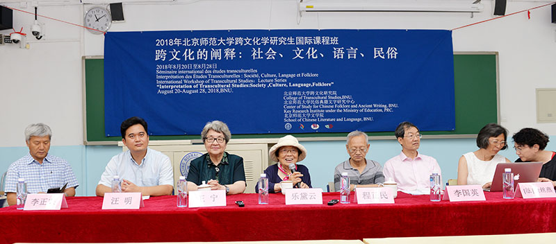 2018年8月20日上午,北京師范大學(xué)第四屆跨文化學(xué)研究生國際課程班正式拉開帷幕。本次課程班由北京師范大學(xué)跨文化研究院、教育部人文社會科學(xué)重點研究基地北京師范大學(xué)民俗典籍文字研究中心、北京師范大學(xué)文學(xué)院聯(lián)合主辦。校主管單位領(lǐng)導(dǎo),北京師范大學(xué)研究生院副院長汪明教授;主辦單位領(lǐng)導(dǎo)代表、北師大民俗典籍文字研究中心主任李國英教授出席了開幕式。出席本屆課程班開幕式的學(xué)術(shù)前輩和中外師資代表有:我國比較文學(xué)和跨文化研究事業(yè)的開拓者、北京大學(xué)跨文化研究中心主任、北京師范大學(xué)跨文化研究院名譽院長樂黛云先生,我國傳統(tǒng)語言文字學(xué)家、北師大章黃學(xué)術(shù)研究中心主任、北師大跨文化研究院名譽院長、資深教授王寧先生,俄羅斯文藝學(xué)研究專家、北師大文藝學(xué)研究中心研究員、北師大學(xué)跨文化研究院學(xué)術(shù)委員會主任程正民先生,法國阿爾多瓦大學(xué)文本與文化研究中心主任、北師大跨文化研究院副院長金絲燕教授,北京師范大學(xué)跨文化研究院院長董曉萍教授,北師大跨文化研究院副院長李正榮教授。董曉萍院長主持開幕式。