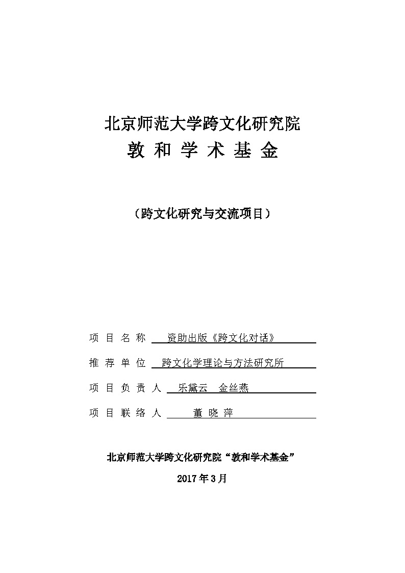 跨文化研究與交流項(xiàng)目:資助出版《跨文化對(duì)話》
