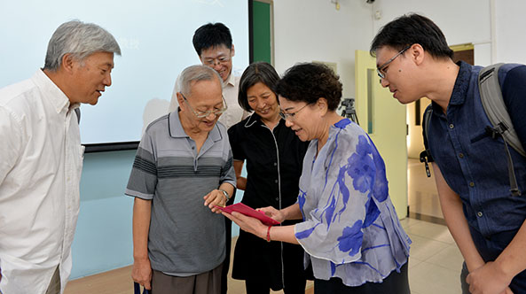 程正民先生與李正榮教授 師生查看微信公眾號(hào)“推送的跨文化學(xué)書(shū)庫(kù)”中的俄羅斯文學(xué)研究書(shū)目
