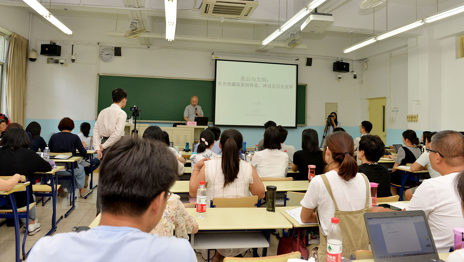 2018年8月24日,北京大學(xué)教授,北京大學(xué)東方文學(xué)研究中心主任王邦維教授在北師大教九103教室授課,題為《圣山與大河:有關(guān)青藏高原的傳說、神話及歷史故事》,共兩節(jié)。法國阿爾多瓦大學(xué)文本與文化中心主任金絲燕教授主持講座。北師大跨文化研究院院長董曉萍教授、北師大跨文化研究院副院長李正榮教授到會。