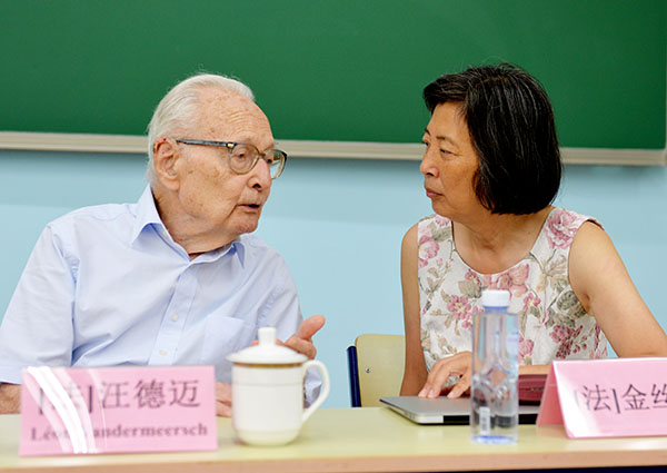 北京大學(xué)博士研究生周佳介紹了她對(duì)歐洲學(xué)者對(duì)印度和中國(guó)想象的研究。并提出問(wèn)題:如何從這些文獻(xiàn)入手更精確地梳理和溯源?汪德邁教授介紹了印度文明在西方的傳播和印度文獻(xiàn)在西方的翻譯狀況,概述歐洲的“印度熱”現(xiàn)象,介紹自己作為一個(gè)法國(guó)人是如何接觸印度文化和中國(guó)文化的,以此來(lái)幫助大家理解印度是如何作為一個(gè)“他者”形象出現(xiàn)在西方人視野中的。