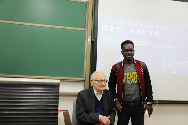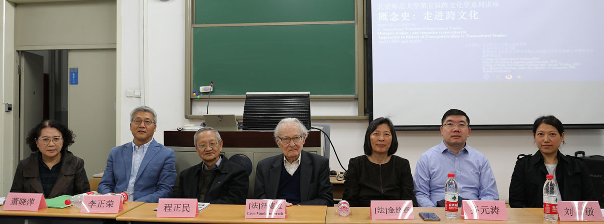 根據(jù)新的教學(xué)目標(biāo),第五屆課程班的主題為“概念史:走進(jìn)跨文化”。2019年4月12日下午6點(diǎn),在教四樓201教室舉行開(kāi)幕式。本校行政主管單位領(lǐng)導(dǎo)和本屆課程班主辦單位代表、課程主講教授和首批達(dá)到北京的國(guó)際一流學(xué)者出席了開(kāi)幕式,他們是:北京師范大學(xué)國(guó)際合作與交流處副處長(zhǎng)劉敏教授,北京師范大學(xué)文學(xué)院副院長(zhǎng)、教育部人文社科重點(diǎn)研究基地北師大民俗典籍文字研究中心副主任齊元濤教授,教育部人文社科重點(diǎn)研究基地北京師范大學(xué)文藝學(xué)研究中心研究員、北師大跨文化研究院學(xué)術(shù)委員會(huì)主任程正民教授,法國(guó)法蘭西學(xué)院通訊院士、法國(guó)高等社會(huì)科學(xué)研究院教授、北京師范大學(xué)榮譽(yù)教授、北師大跨文化研究院名譽(yù)院長(zhǎng)汪德邁(Léon Vandermeersch)教授,法國(guó)阿爾多瓦大學(xué)特級(jí)教授、東方學(xué)系主任、北京師范大學(xué)客座教授、北師大跨文化研究院副院長(zhǎng)金絲燕教授,北京師范大學(xué)跨文化研究院副院長(zhǎng)李正榮教授和北京師范大學(xué)跨文化研究院院長(zhǎng)董曉萍教授??缥幕芯吭涸洪L(zhǎng)董曉萍教授主持了今天的開(kāi)幕式。