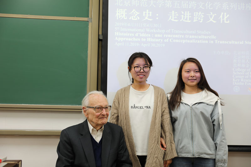 “概念史:走向跨文化”,是2019年北師大教務(wù)部首次推出的全校本科平臺(tái)課程,校內(nèi)專職任課教師為李正榮教授、董曉萍教授和客座教授金絲燕教授。2019年春季學(xué)期首輪開(kāi)課,第一節(jié)由李正榮教授和董曉萍教授聯(lián)袂主講。自第二節(jié)起,由李正榮教授獨(dú)立完成基本概念史部分的授課。自第六節(jié)起至期末,由董曉萍教授授課,同時(shí)邀請(qǐng)國(guó)際高校一流學(xué)者闡述前沿概念史,前面提到的法蘭西學(xué)院兩院士汪德邁教授與Pierre-Sylvain Filliozat教授等,都將加盟講授,并提前寄來(lái)了講稿。同步開(kāi)設(shè)的“跨文化學(xué)方向”研究生課程和相關(guān)課程按課程表進(jìn)行,中外授課師資有:董曉萍教授、李正榮教授、李國(guó)英教授、汪德邁教授、金絲燕教授、Pierre-Sylvain Filliozat教授和Bart Dessein教授等。同步出版教材“跨文化學(xué)研究”系列叢書(shū)10種,汪德邁先生新著《中國(guó)教給我們什么?》為其中的第80種。