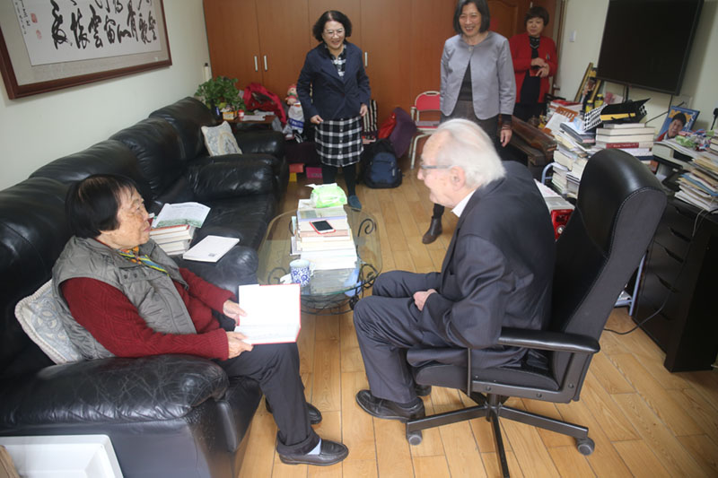講座次日上午,汪德邁先生、金絲燕教授和董曉萍教授前往北京大學(xué)看望樂黛云先生。汪德邁先生親自將新著《中國教給我們什么?》當(dāng)面送給樂黛云先生,老友重逢,相談甚歡。然后大家一起移步至"湯先生藏書室"參觀,至中午結(jié)束。