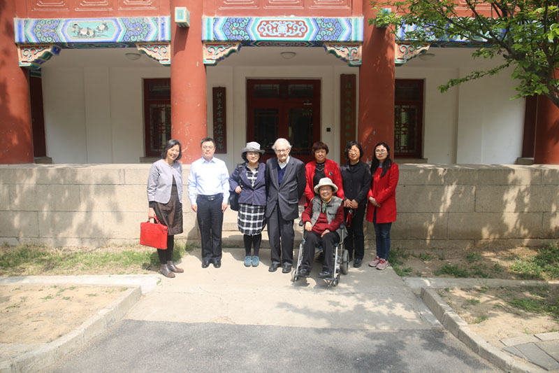 汪德邁先生與樂黛云先生、金絲燕教授、董曉萍教授一行參觀北大湯先生藏書室并與工作人員合影(2019年4月13日,呂紅峰攝)