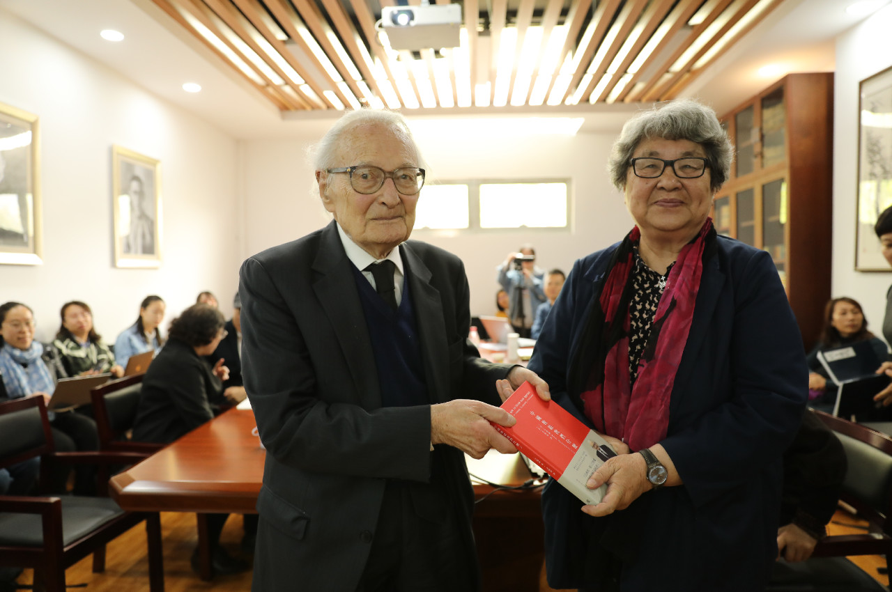 王寧先生高度評價汪德邁中國學的重大學術價值和社會地位,充分肯定金絲燕教授的優(yōu)異研究成績。在本課最后,王寧先生側重從傳統(tǒng)語言文字學的角度,對以語言學研究社會制度與社會思想的理論與方法,從學術概念內涵的發(fā)展過程做了總結,主要闡釋了“象與義”、“類與分”、“名與實”、“言與文”等概念組的內涵及其在漫長的中國社會文化史中傳承與嬗變的規(guī)律。汪德邁先生信以為然,金絲燕教授也表示贊同,中法學者就傳統(tǒng)語言文字學與海外漢學的當代互動關系做了進一步的雙向交流。汪德邁教授將為王寧先生親筆簽名的新著《中國教給我們什么?》贈送給王寧先生,再次致謝。