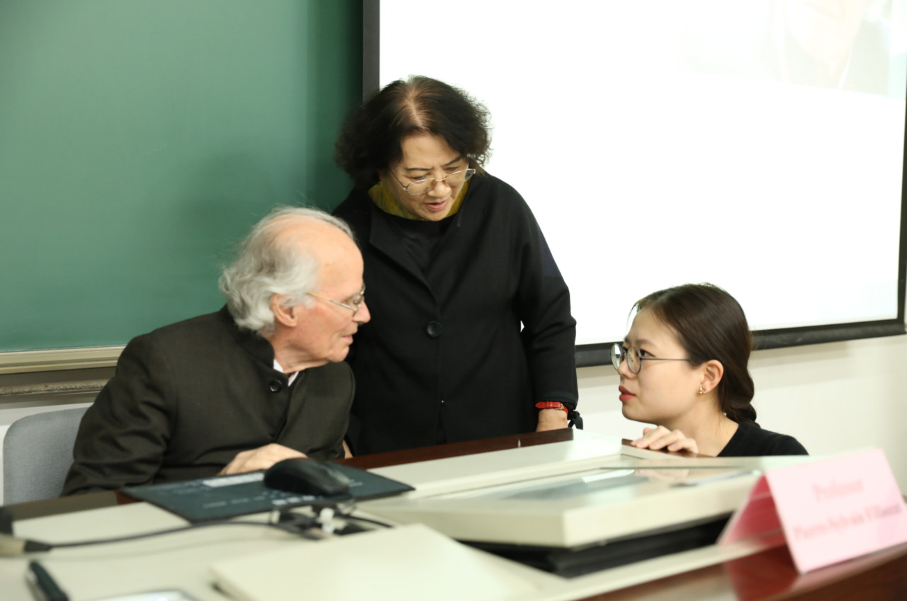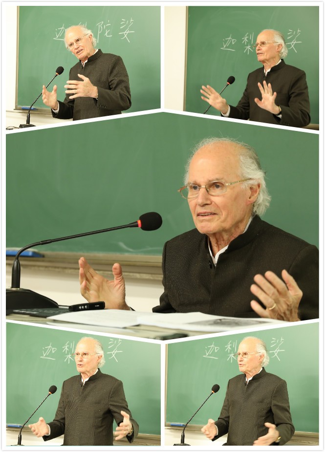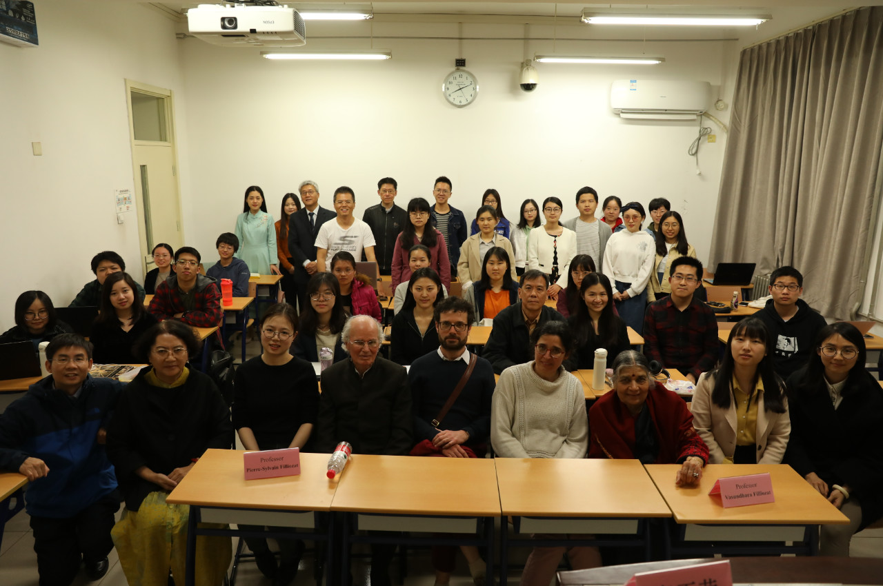 Pierre-Sylvain Filliozat教授自青年時(shí)代起繼承家學(xué)淵源,精通英文、梵文、巴利文等多種語言,投身印度學(xué)研究六十余載,沉潛古籍、持之以恒,研究著述豐厚。父子齊名,兩代人都是法蘭西學(xué)院院士,在歐洲影響很大,許多歐洲高校圖書館都收藏了他們父子的著作。本次是他首次應(yīng)邀到中國(guó)北京講學(xué)。
