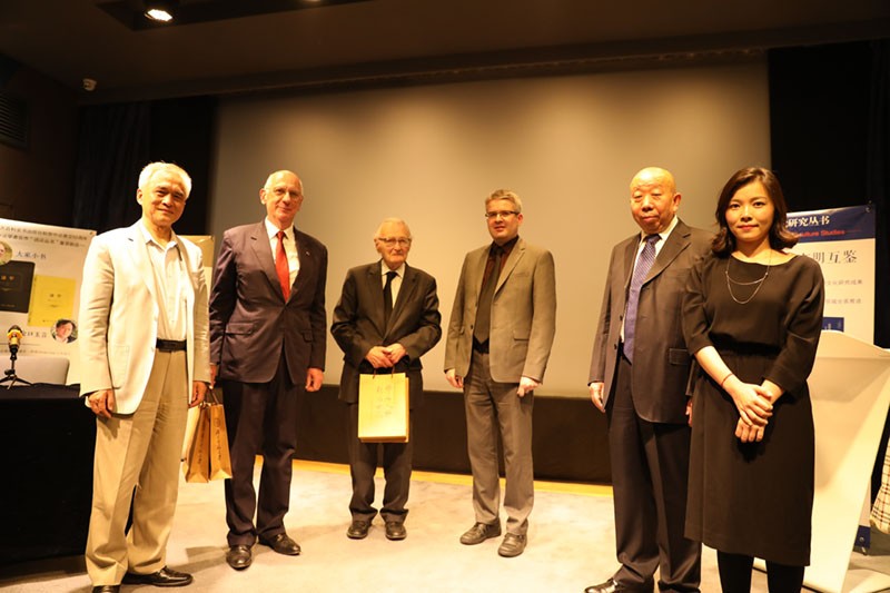 本次新書發(fā)布會在攜手共進的氛圍中落幕。會議向加盟“跨文化研究”叢書出版的所有中法出版社致謝,它們是:中國大百科全書出版社、北京大學出版社、商務印書館、中國人民大學出版社、香港中文大學出版社、中國社會科學出版社、法國NUVIS出版社、DDB出版社和巴黎友豐出版社等。在會議最后,新書作者代表,汪德邁、米歇爾·冉刻和陳越光等,向法國駐華大使館學者和出版單位代表贈送了個人簽名著作并鄭重致謝。