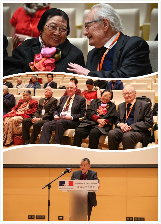 出席本會(huì)的中法嘉賓和社會(huì)各界人士主要有:法國文化中心圖書館館長李大維(David Lizard)、文化處高級(jí)項(xiàng)目官金瑞玲(Juliette Jin),法蘭西學(xué)院院士、法蘭西學(xué)院副院長米歇爾·冉刻教授、法蘭西學(xué)院通訊院士、法國高等社會(huì)科學(xué)研究院汪德邁教授、法蘭西學(xué)院院士、法蘭西學(xué)院金石美文學(xué)院原院長、法國高等社會(huì)科學(xué)研究院Pierre-Sylvain Filliozat教授與夫人Vasundhara Filliozat教授,法國阿爾多瓦大學(xué)特級(jí)教授、東方學(xué)系主任金絲燕、香港明遠(yuǎn)基金會(huì)主席陳越光先生,香港中文大學(xué)中國文化研究所原所長、香港中文大學(xué)榮譽(yù)教授、香港明遠(yuǎn)基金會(huì)理事陳方正先生、北京大學(xué)跨文化研究中心主任樂黛云教授、教育部國家語文教材基地主任、北京師范大學(xué)資深教授王寧先生、中國藝術(shù)研究院研究員、浙江大學(xué)馬一浮書院院長劉夢(mèng)溪先生,教育部人文社會(huì)科學(xué)重點(diǎn)研究基地北京師范大學(xué)民俗典籍文字研究中心主任李國英教授,北京師范大學(xué)跨文化研究院院長董曉萍教授,跨文化研究院學(xué)術(shù)委員會(huì)主任程正民教授,跨文化研究院副院長李正榮教授;南京大學(xué)研究院生院院長吳俊教授。中法合作“跨文化研究”叢書出版單位代表,中國大百科全書出版社劉國輝社長,中國大百科全書出版社社會(huì)科學(xué)分社郭銀星社長與曾輝副社長、商務(wù)印書館文史編輯室陳潔主任、香港中文大學(xué)出版社社長代表陳甜編輯、北京大學(xué)出版社初艷紅編輯。《人民日?qǐng)?bào)》、中國新聞社、清華大學(xué)學(xué)堂在線和北京師范大學(xué)電視臺(tái)等媒體記者到會(huì)。其他法國學(xué)者和北京師范大學(xué)跨文化研究院師生列席。香港中文大學(xué)中國文化研究所原所長陳方正教授主持典禮。頒獎(jiǎng)典禮歷時(shí)兩小時(shí)圓滿落幕。