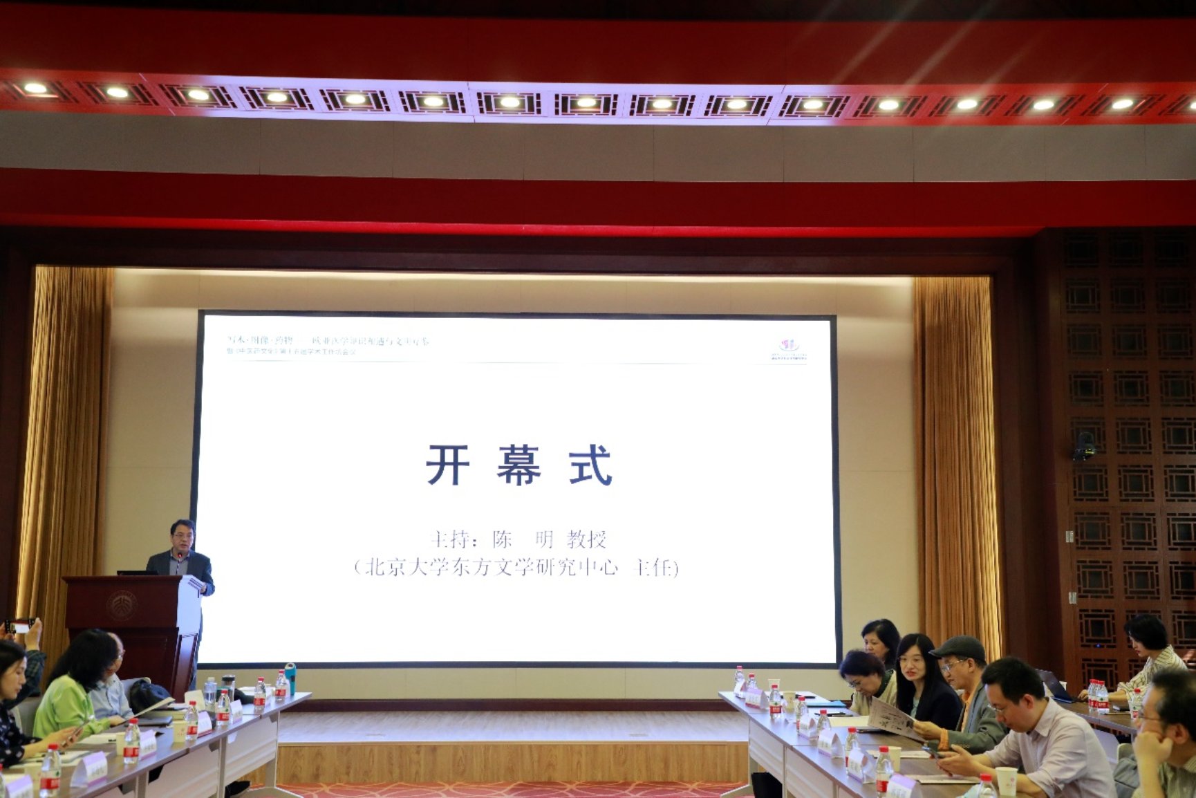 北京大學東方文學研究中心主任暨北京大學外國語學院院長陳明教授主持開幕式