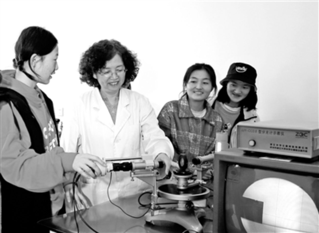 光學實驗室為本科生講授“分光儀的調(diào)節(jié)和使用”。黃晶 攝