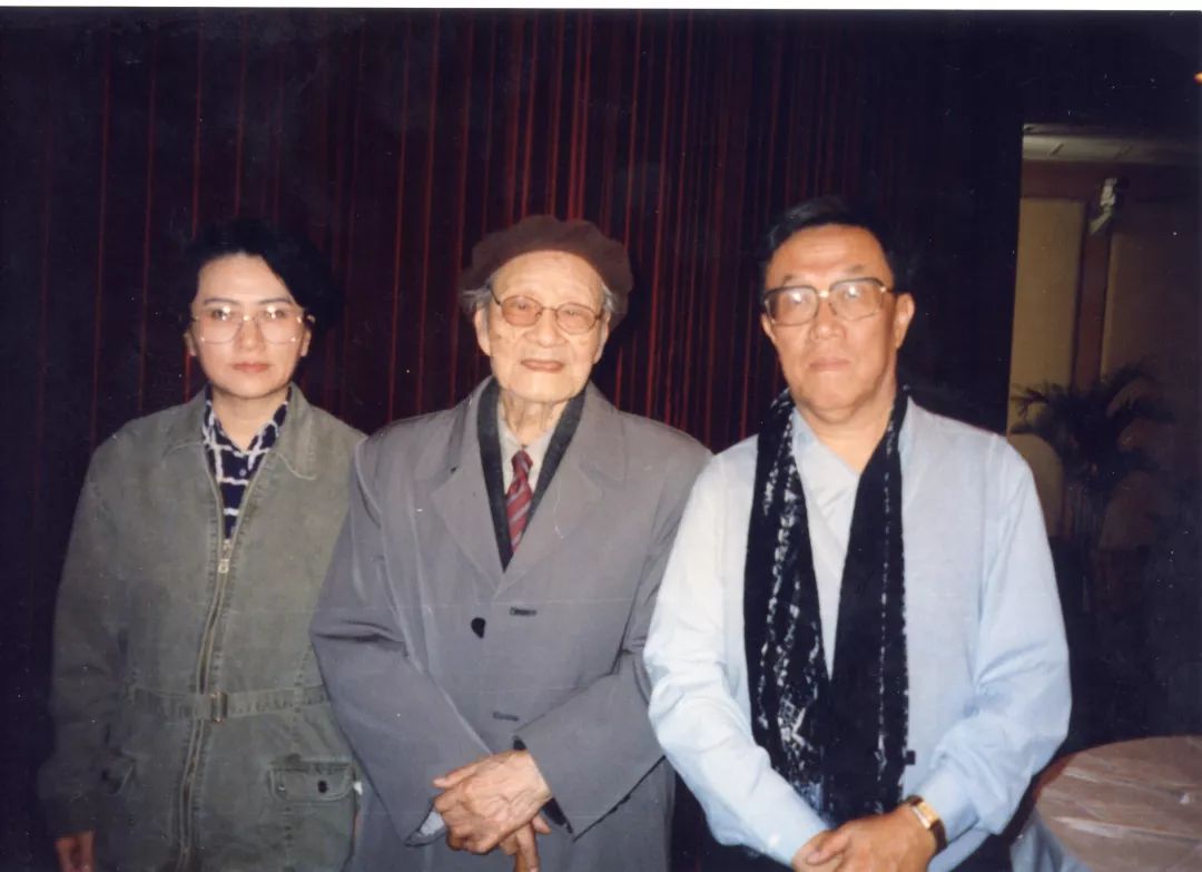 在全國政協(xié)禮堂陪鐘敬文先生開會(右起:王蒙、鐘敬文、董曉萍,1996)